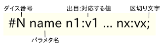 ルールは次のフォーマットでダイス毎に設定します。