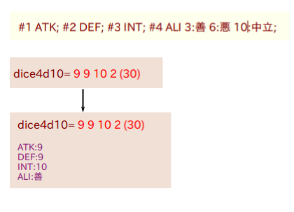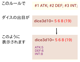 スレッド内に下記のルールがある場合、そのルールにしたがって出目を整形し表示します。
